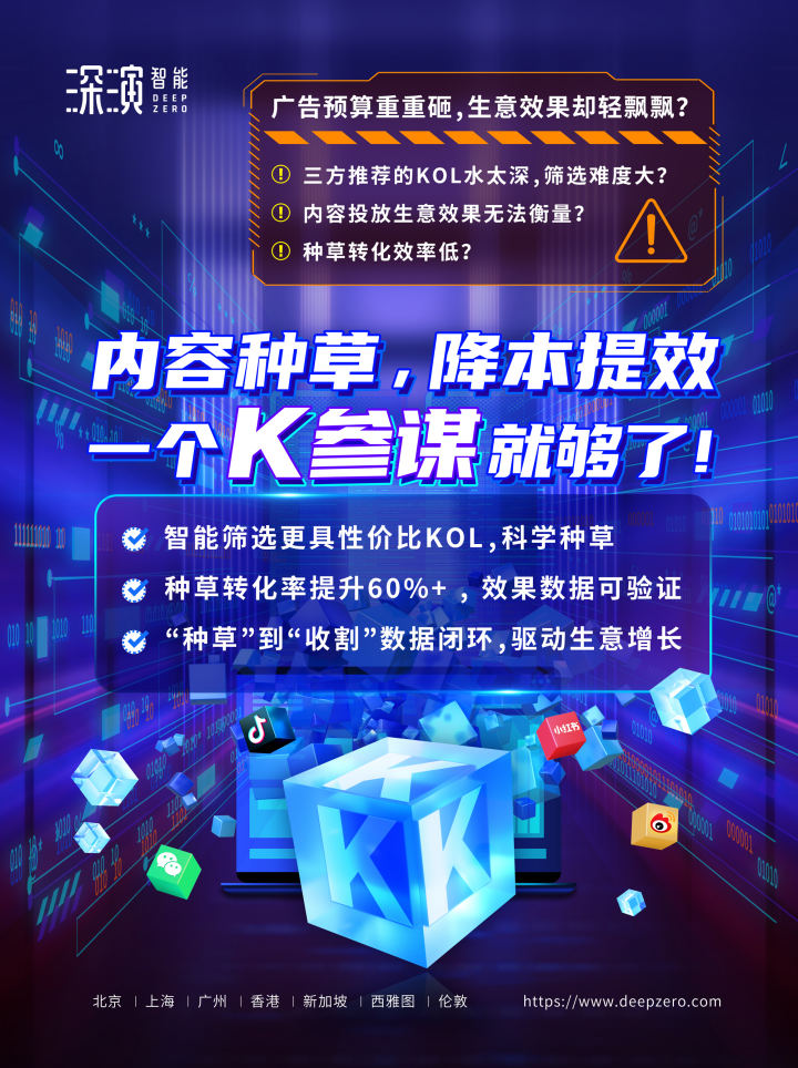 PG电子智能K参谋对接电商平台后链路,可针对每一个KOL内容种草情况进行全链路评估,“种草”到“收割”链路闭环,效果数据可验证;
