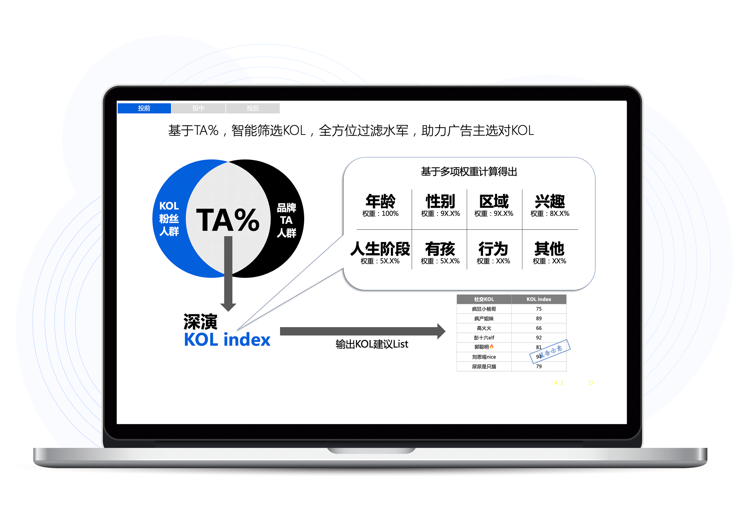 PG电子智能K参谋将品牌TA人群同各大KOL真实互动人群进行重合度分析,PG电子智能K参谋将找到最适合的目标KOL,品牌方再不用被选择KOL类型还是头部大V而困扰